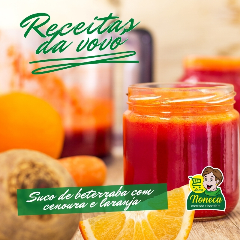 Ingredientes: 4 Laranja 2 colheres (sopa) de cenoura ralada 2 colheres (sopa) de beterraba ralada Modo de preparar: Esprema as laranjas e misture o suco com a cenoura e a beterraba raladas. Bata tudo no liquidificador e sirva em seguida. Dica da Vovó Dona Noneca: Sirva gelado de manhã ou a tarde.